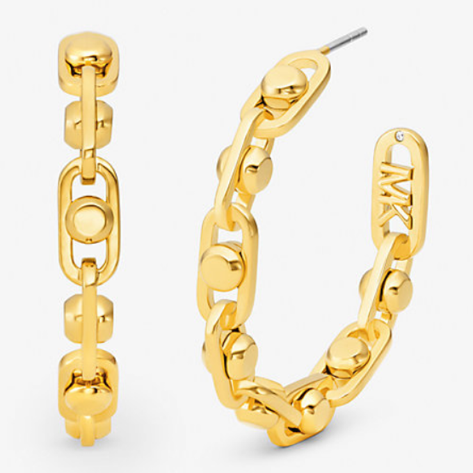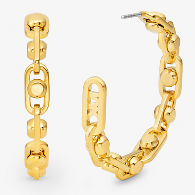 Astor Medium Precious Metal-Plated Brass Link Hoop Earrings