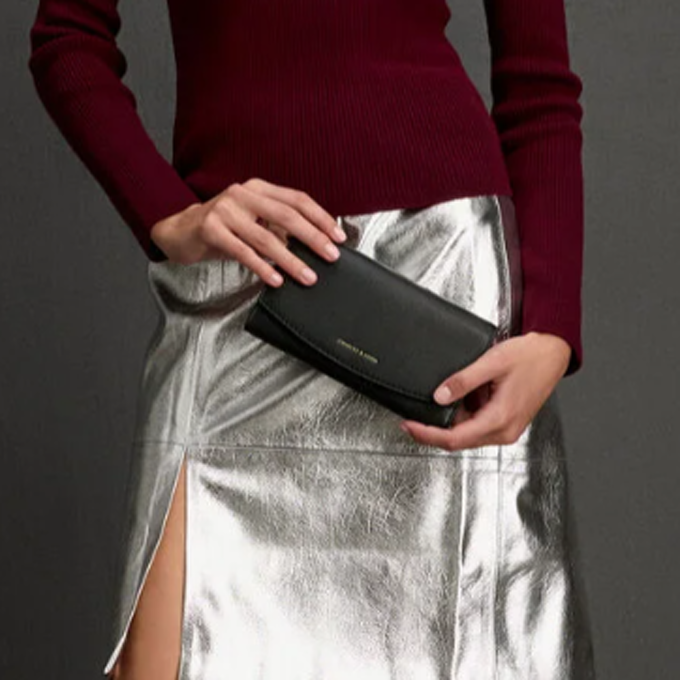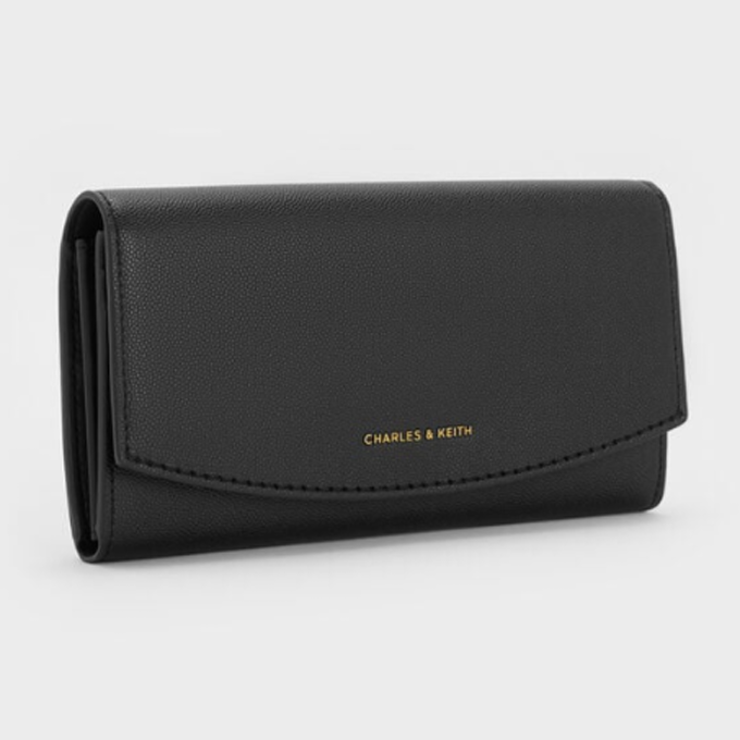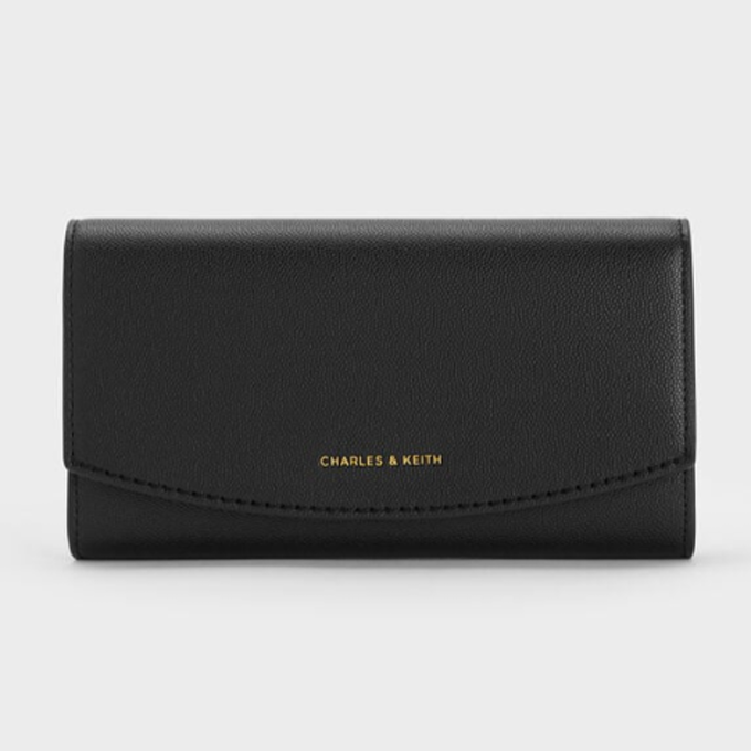Briony Curved Flap Long Wallet – Black