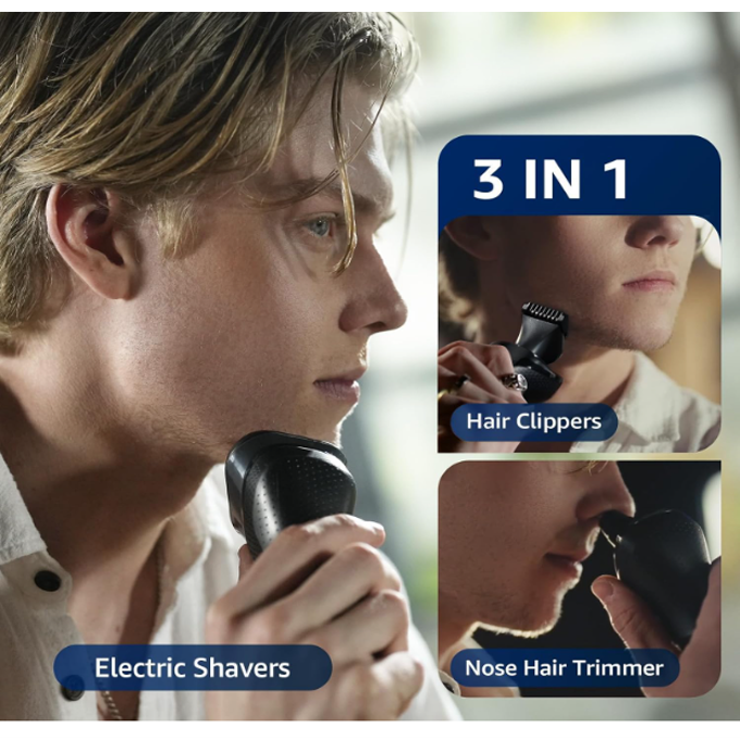 Cordless Electric Razor for Men: 3-in-1 Shaver for Beard/Nose/Sideburns – IPX7 Waterproof Travel Kit – Turbo Speed & Precision Blades
