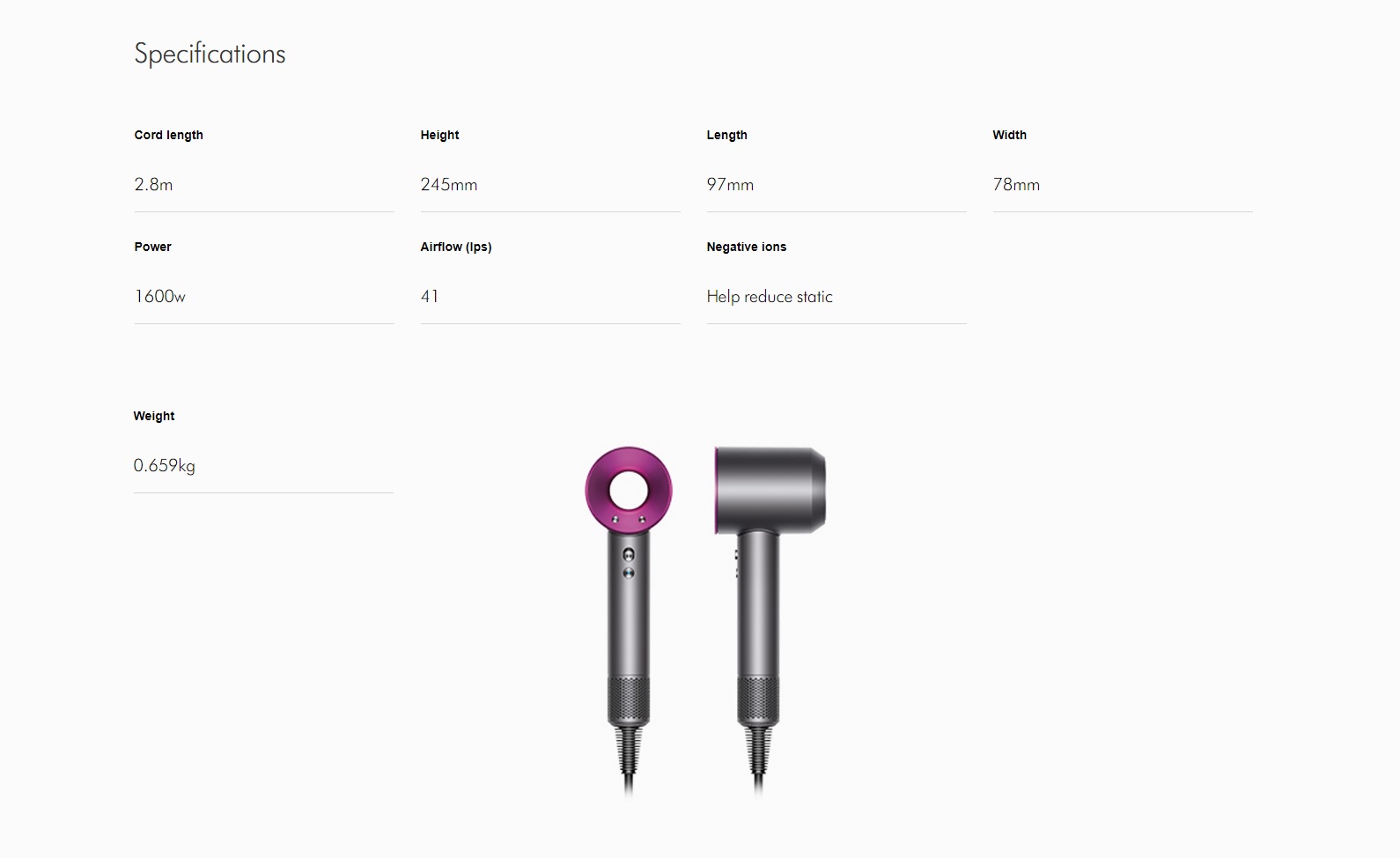 Dries hair with smooth, controlled airflow, helping to create a smooth, natural finish.