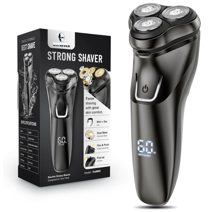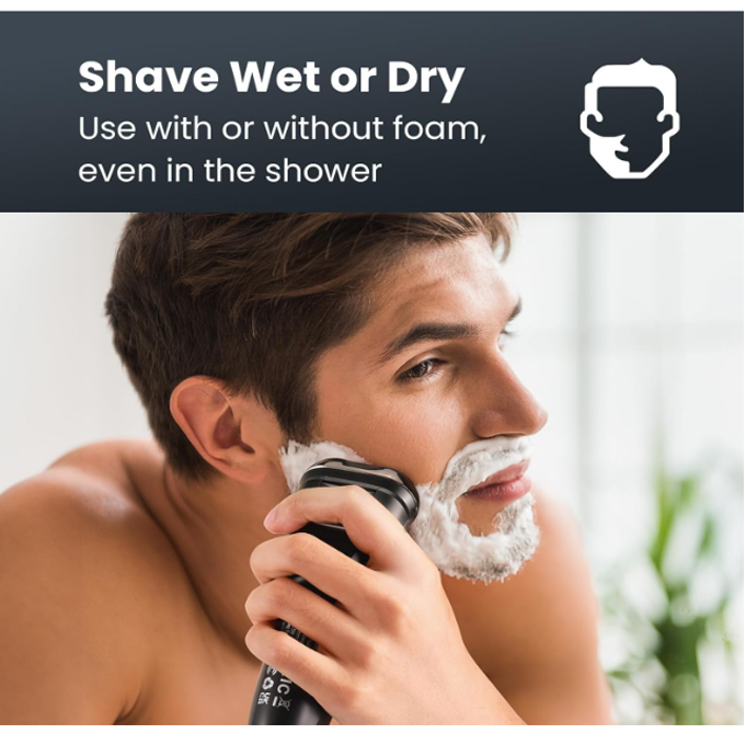 Electric Razor for Men Waterproof – Wet/Dry Cordless Rotary Shaver – Precision Blades Sensitive Skin Care, USB Fast Charging & Pop-up Trimmer Luxury Black Upgraded