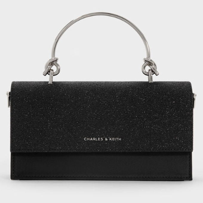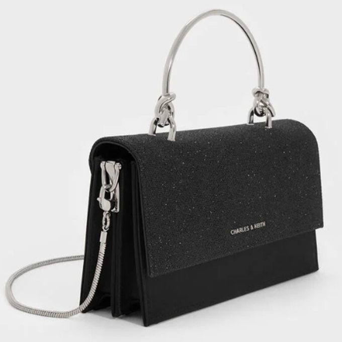 Kristine Glittered Wallet On Chain – Noir