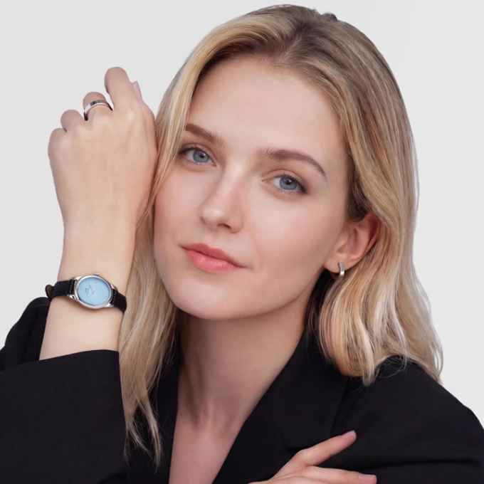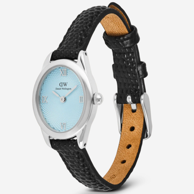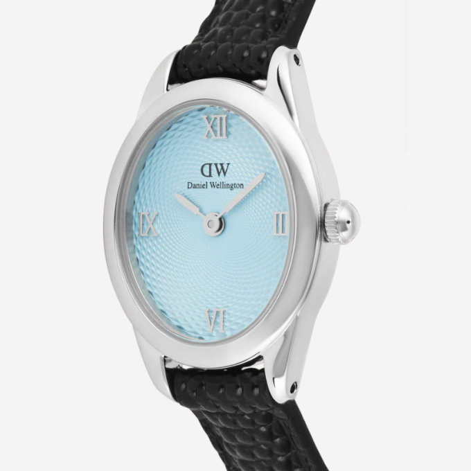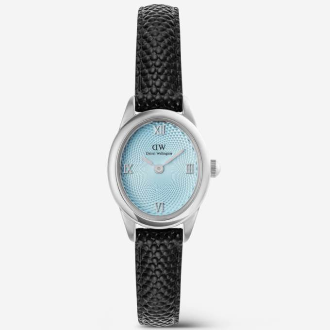 Ophelia Mini Black Lizard Ice Blue Guilloché Silver