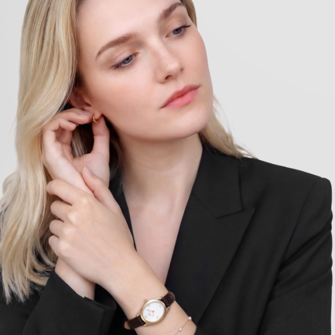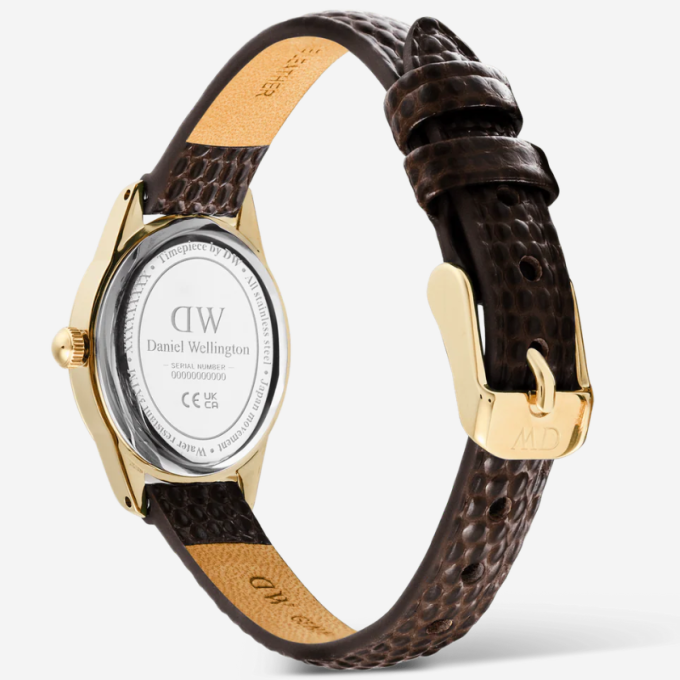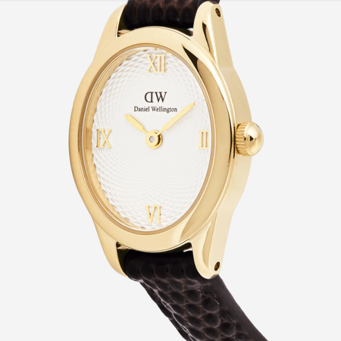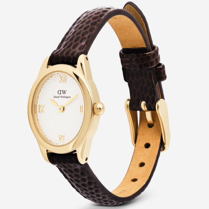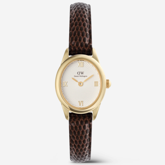 Ophelia Mini Dark Brown Lizard White Guilloché Gold