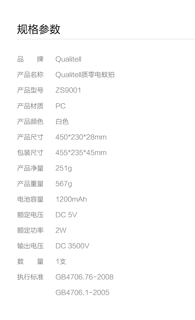Qualitell质零电蚊拍